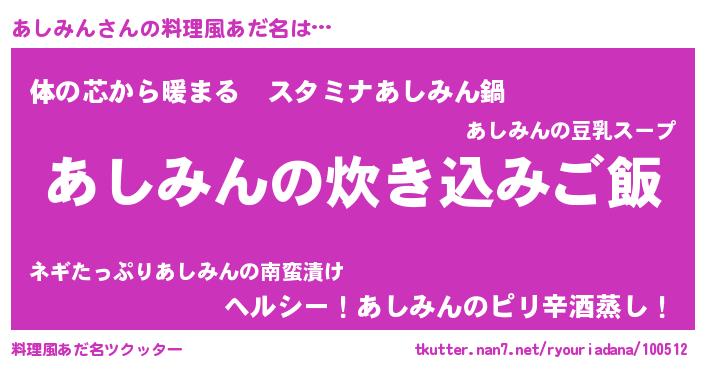 | 胡散臭い通販商品みたいなあだ名 | 『運命の人と巡り会える高級そうな壺…その名も「あしみん」』 |