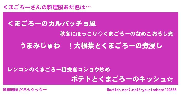 | 欧米人風あだ名 | 『くまごろークリステル』 |