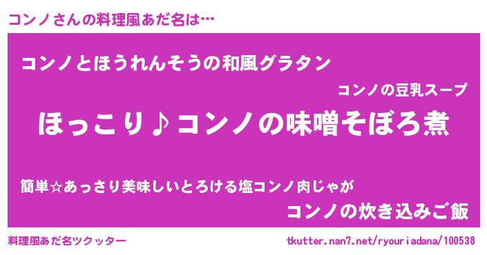 | 可愛いあだ名 | 『コんコん』『コンぷりん』 |