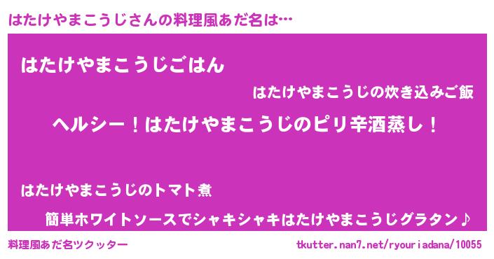 | 男性向けラノベタイトル風あだ名 | 『Re:はたけやまこうじから始める異世界生活』 |