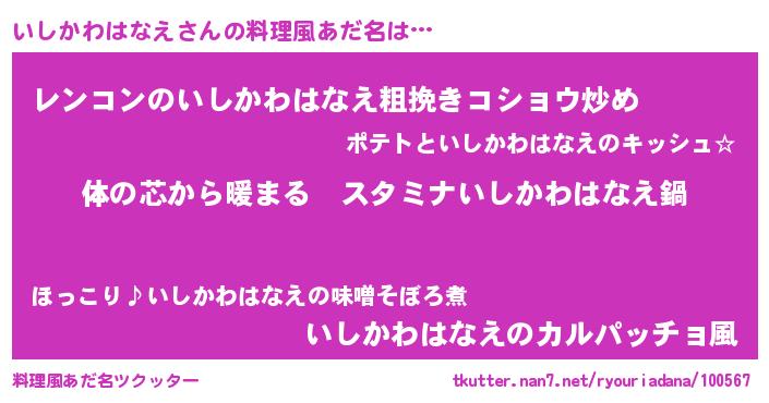 | 男性向けラノベタイトル風あだ名 | 『やはりいしかわはなえの青春ラブコメはまちがっている 』 |