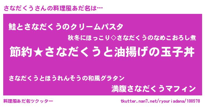 | 男性向けラノベタイトル風あだ名 | 『サナダクウアートオンライン』 |