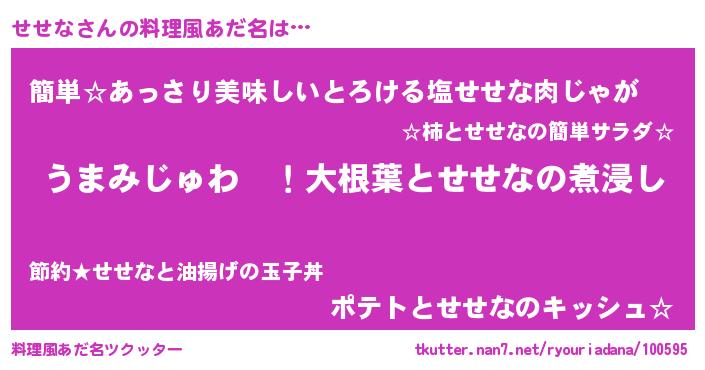 | ポケモン風あだ名 | 『セセナダネ』『ゼニセセ』 |