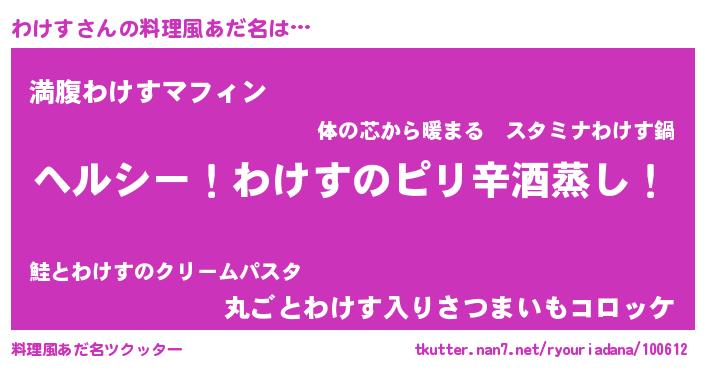 | 意味不明あだ名 | 『自称わけす』『永久保存わけす』 |