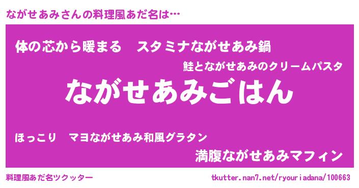| 肩書あだ名 | 『ながせあみ中尉』『ながせあみ国家主席』 |
