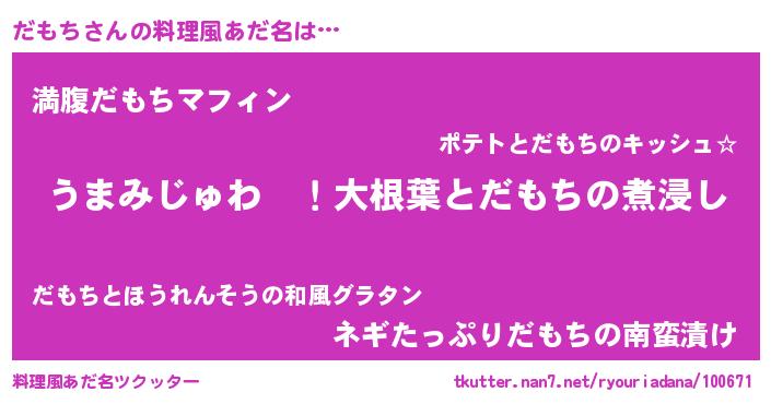 | ヒーロー風カッコイイあだ名 | 『ウルトラだもちマン』『ネオダモチ』 |