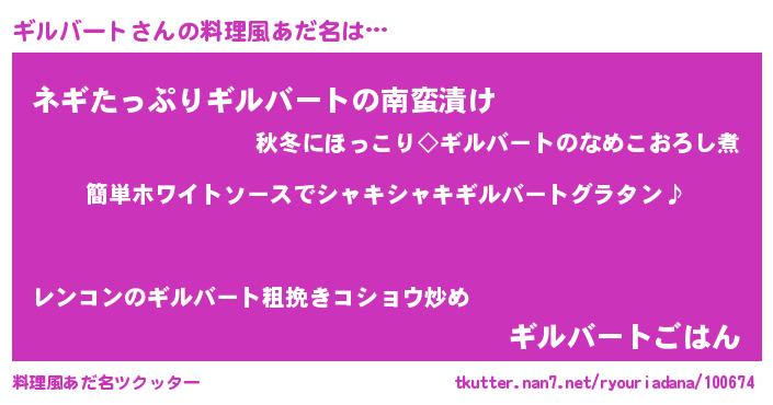 | 男性向けラノベタイトル風あだ名 | 『ギルバートの嫁は女の子じゃないと思った?』 |