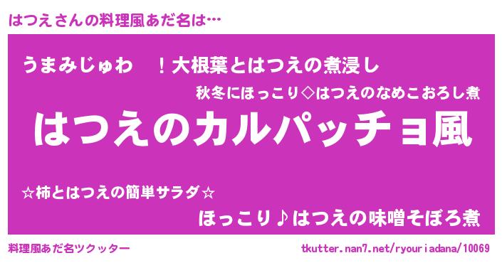 | 男性向けラノベタイトル風あだ名 | 『魔弾の王とはつえ』『はつえの憂鬱』 |