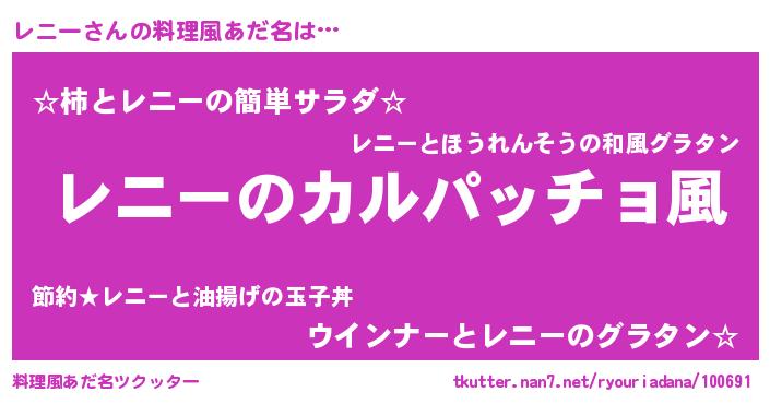 | ヘコむあだ名 | 『つくし』『レニふぇ~』『レニを』 |