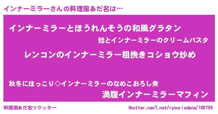 | ヘコむあだ名 | 『インナーミラー(遠い目)』『インぷりん』 |