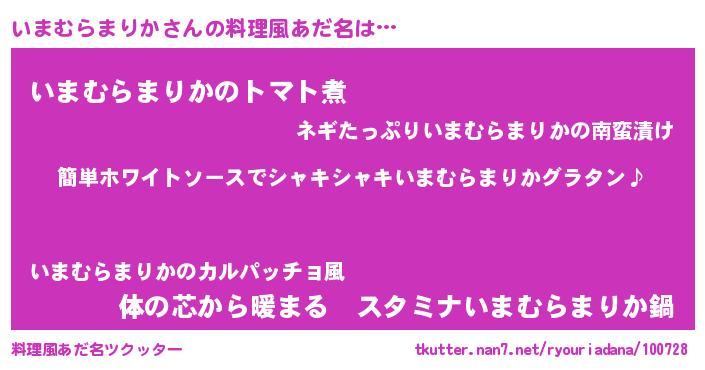 | 胡散臭い通販商品みたいなあだ名 | 『全米が絶賛したサプリメント…その名も「いまむらまりか」』 |
