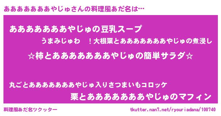 | 胡散臭い通販商品みたいなあだ名 | 『信頼と実績のペンダント…その名も「あああああああやじゅ」』 |