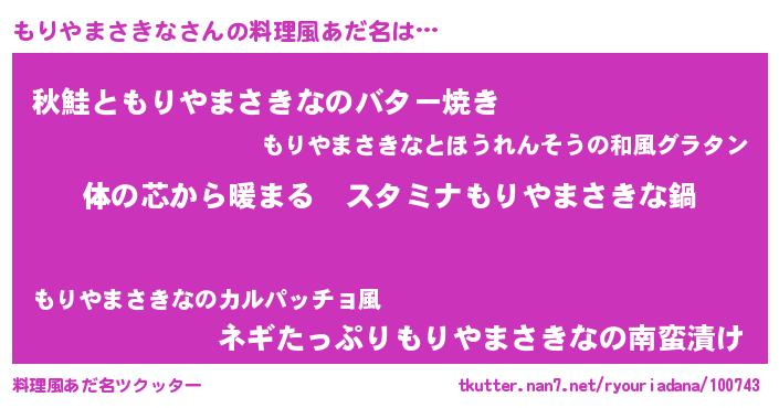 | 意味不明あだ名 | 『もりやまさきなフォーエバー』 |