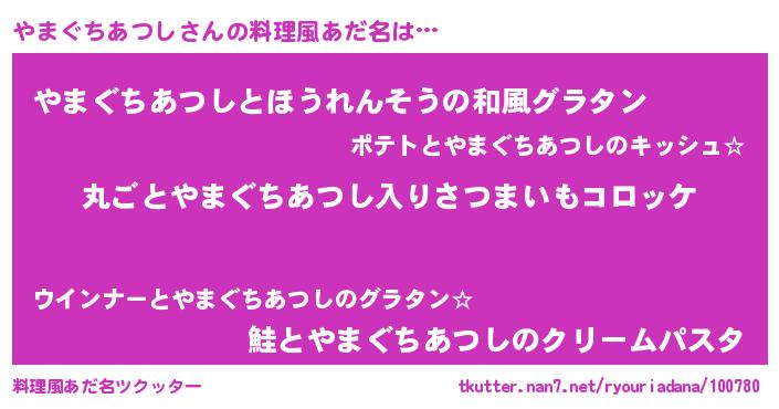 | 意味不明あだ名 | 『住所不定無職やまぐちあつし(79歳)』 |