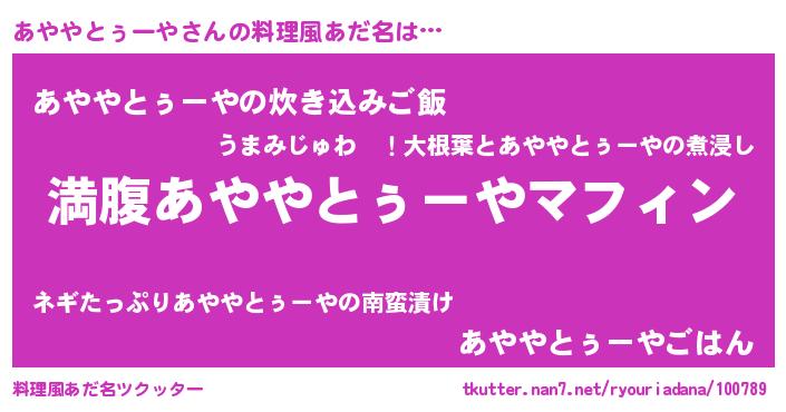 | 女子向けラノベタイトル風あだ名 | 『異世界で失敗しない100のあややとぅーや』 |