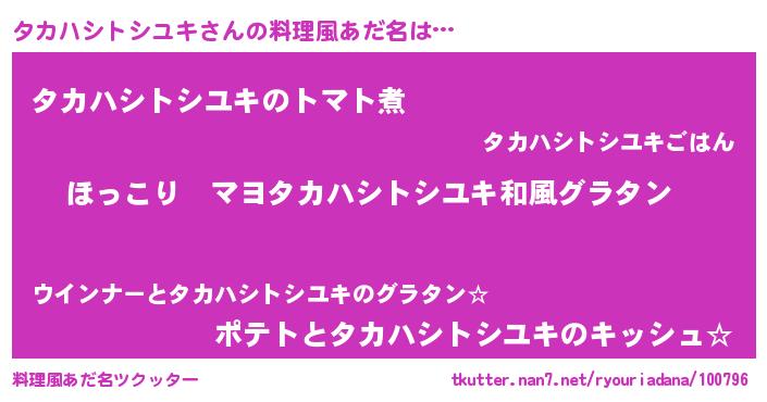 | 男性向けラノベタイトル風あだ名 | 『この素晴らしい世界にタカハシトシユキを!』 |