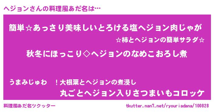 | 胡散臭い通販商品みたいなあだ名 | 『前代未聞の健康食品…その名も「へジョン」』 |