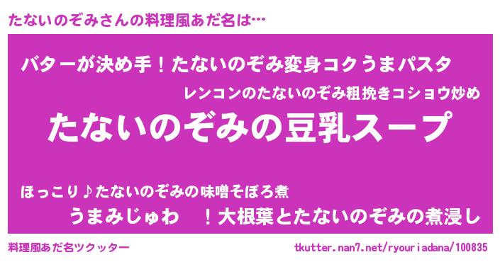 | 意味不明あだ名 | 『とにかく怪しいたないのぞみ』 |