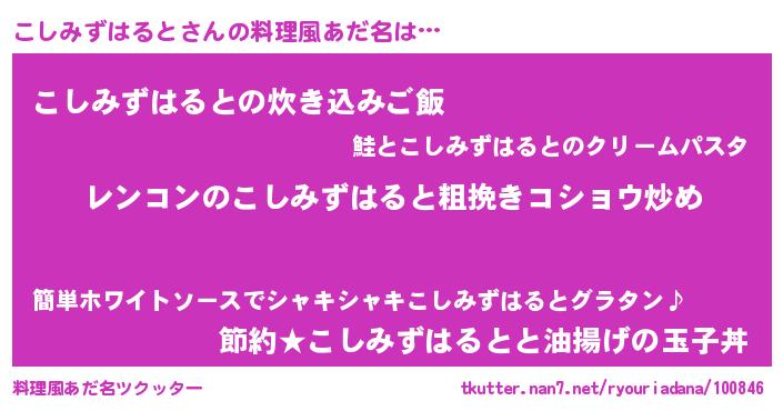 | 胡散臭い通販商品みたいなあだ名 | 『ガンによく効く高麗人参…その名も「こしみずはると」』 |