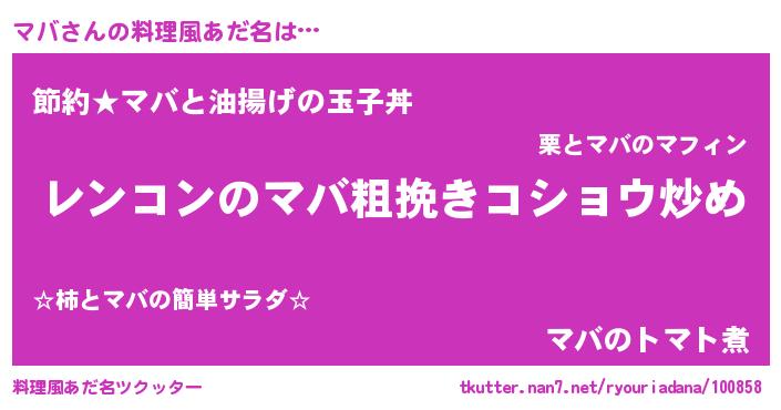 | 男性向けラノベタイトル風あだ名 | 『魔法科高校のマバ』『マバの憂鬱』 |
