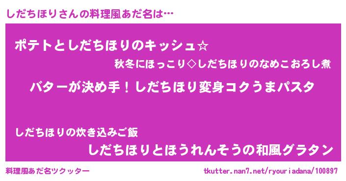 | 男性向けラノベタイトル風あだ名 | 『おまえをオタクにしてやるから、俺をしだちほりにしてくれ! 』 |