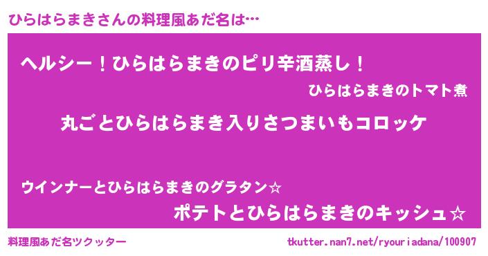 | 女子向けラノベタイトル風あだ名 | 『乙女ゲームの破滅フラグしかない悪役ひらはらまきに転生してしまった…』 |