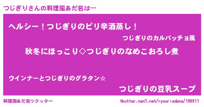 | 男性向けラノベタイトル風あだ名 | 『つじぎりに滅ぼされるだけの簡単なお仕事です』 |