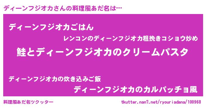 | 女子向けラノベタイトル風あだ名 | 『死神ディーンフジオカの再婚』 |