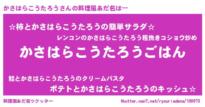 | 肩書あだ名 | 『かさはらこうたろう上級大将』 |