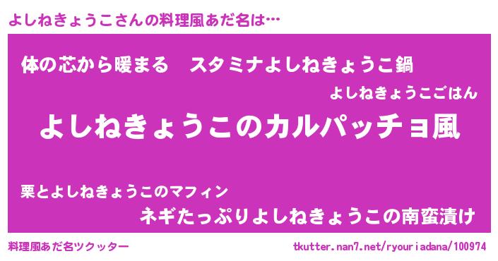 | 意味不明あだ名 | 『住所不定無職よしねきょうこ(39歳)』 |