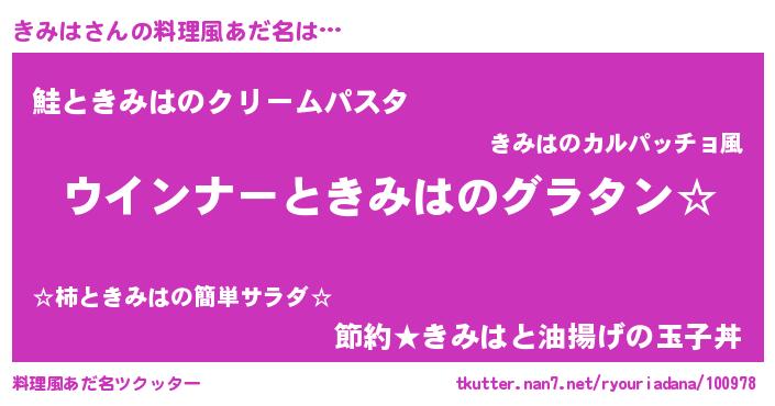| 自動車の名前っぽいあだ名 | 『キクア』『キンR』『キミティマ』 |