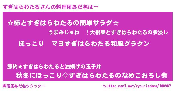 | 意味不明あだ名 | 『住所不定無職すぎはらわたる(79歳)』 |