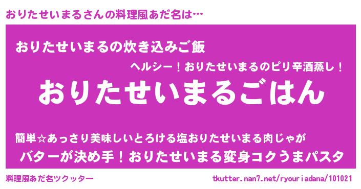 | ヘコむあだ名 | 『おりたせいまる(笑)』『おりぷりん』 |