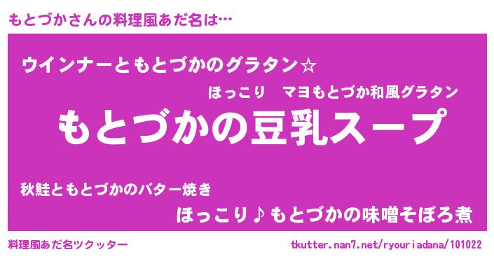 | 胡散臭い通販商品みたいなあだ名 | 『信頼と実績のサプリメント…その名も「もとづか」』 |
