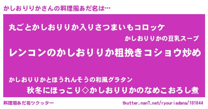| 胡散臭い通販商品みたいなあだ名 | 『ガンによく効く高麗人参…その名も「かしおりりか」』 |