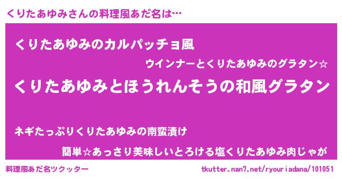 | ヘコむあだ名 | 『くりたあゆみ(笑)』『つくし』 |