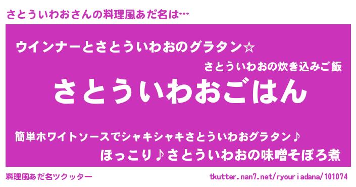 | 男性向けラノベタイトル風あだ名 | 『転生したらさとういわおだった件』 |