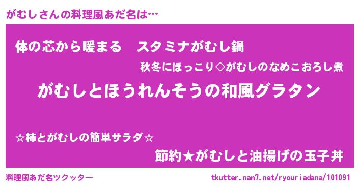 | 男性向けラノベタイトル風あだ名 | 『がむし~年齢イコール彼女いない歴の魔法使い~』 |