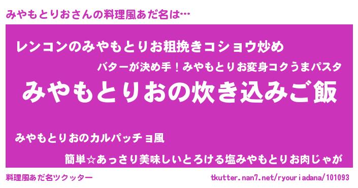 | ヘコむあだ名 | 『みやもとりお(爆)』『みやぷりん』 |
