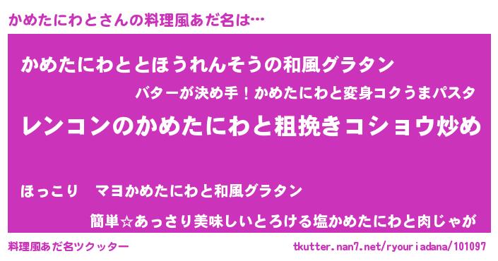 | 女子向けラノベタイトル風あだ名 | 『かめたにわとなんてお断りですっ。』 |