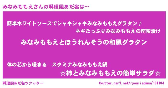 | 意味不明あだ名 | 『もやし科みなみももえ属』 |