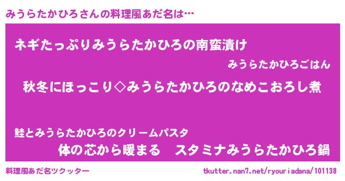 | 男性向けラノベタイトル風あだ名 | 『みうらたかひろに滅ぼされるだけの簡単なお仕事です』 |