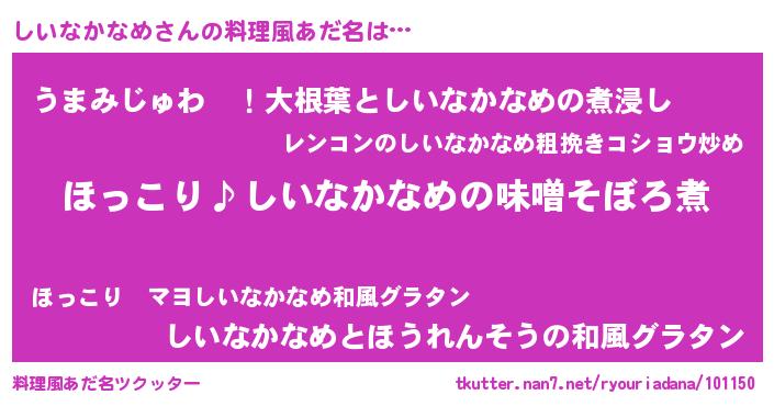 | 胡散臭い通販商品みたいなあだ名 | 『必ず成功するブレスレット…その名も「しいなかなめ」』 |