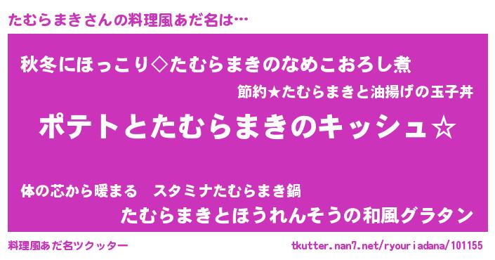 | 胡散臭い通販商品みたいなあだ名 | 『伝統あるサプリメント…その名も「たむらまき」』 |