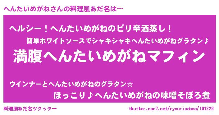 | ヘコむあだ名 | 『へんたいめがね(震え声)』『へんにー』 |