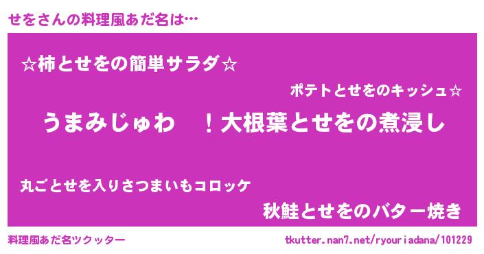| ヘコむあだ名 | 『レバニラ』『せを(爆)』『せをもー』 |
