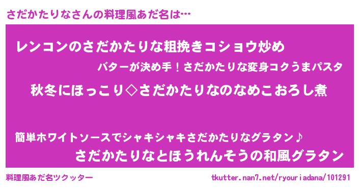 | 男性向けラノベタイトル風あだ名 | 『さだかたりなに滅ぼされるだけの簡単なお仕事です』 |