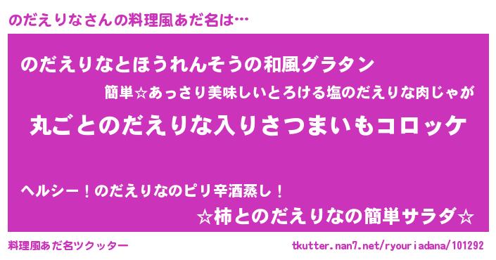 | 意味不明あだ名 | 『住所不定無職のだえりな(77歳)』 |