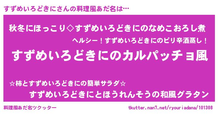 | ヘコむあだ名 | 『すずめいろどきに(笑)』『すずにゅー』 |