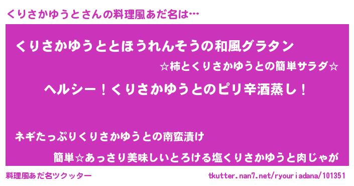 | 男性向けラノベタイトル風あだ名 | 『Re:くりさかゆうとから始める異世界生活』 |
